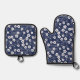 Japanese Blue Sakura Cherry Blossom Flowers Oven Mitt & Pot Holder Set