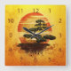 Japanese Bonsai Tree Sunset Square Wall Clock