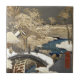 Vintage fine art painting in winter colours depicting an old village and bridge in the snow.