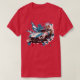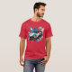 I give wanted to give this a 4 instead of a 5 because these Basic DARK T0shirts run unexpectedly SLIM or Narrow. Which is great if you do not have a potbelly, but I have a paunch. It isn't the shirt's fault that I've got a beer belly. The design and shirt itself is a quality cotton shirt. The color is more of a deep purple, but still a very pretty color. The Basic DARK T-shirts run a bit SLIMMER than the Basic Ts. The neck is a fraction narrower (or seems to be narrower) also. I'm a paunchy middle-aged woman and my neck is 12 inches (31cm) thick and the neckline fell about the same as in the photo of the man, and I had the desire to tug it a bit. So if you're a thick necked man or like loose shirts, be aware these are slimmer shirts. Once I get rid of my lockdown paunch it'll look great. The shirt washed well in cold water with no apparent bleeding. We don't have a dryer, so it hung dry. Did not shrink. Love the colors and the design. The design looks smaller on my shirt than it does on the model on-line. But still, it looks good on the shirt. The printing looks as it does on the model, just the size seems fractionally smaller. Washed garment in cold water, hung dry and design appeared unaffected.