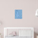 Mixed media digital graphic of a Japanese inspired sitting cat, in a batik pattern, against a kimono print background - Soft sky blue, dark cobalt blue and white, accented with dark blue