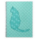 Mixed media digital graphic of a Japanese inspired sitting cat, in a traditional asanoha pattern, against a patterned background - Turquoise / peacock and aqua, accented with dark teal