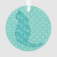 Mixed media digital graphic of a Japanese inspired sitting cat, in a traditional asanoha pattern, against a patterned background - Turquoise / peacock and aqua, accented with dark teal