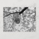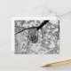 Black and white photo postcard of lantern hanging in a blossoming cherry tree.