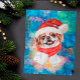 Japanese Chin Breed Dog Christmas features a watercolor of a Japanese Chin with a red Santa's Hat, a red Christmas scarf, and a galaxy watercolor.