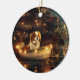 Set sail into the magic of the holiday season with this beautifully detailed illustration, showcasing a proud dog sitting in a festively decorated boat, gliding across a serene Christmas lake. The twinkling lights from nearby pine trees reflect off the water, casting a warm, festive glow that enhances the cosy ambiance. Ornaments dangle from the boat's sides, while glowing lanterns light the way, creating a scene that captures the true essence of Christmas warmth and joy. This nostalgic artwork brings a touch of holiday magic to any space, perfect for those who cherish the spirit of the season.