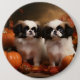 Japanese Chin Puppy Autumn Delight Pumpkin 6 Cm Round Badge