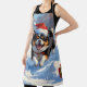 Japanese Chin Running in Snow with Christmas Hat Apron