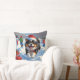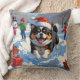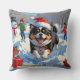 Japanese Chin Running in Snow with Christmas Hat Cushion