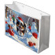Japanese Chin Running in Snow with Christmas Hat Large Gift Bag