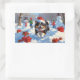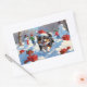 Japanese Chin Running in Snow with Christmas Hat Rectangular Sticker
