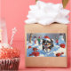 A charming Japanese Chin runs through the snowy winter scene, wearing a festive red Christmas hat. With its silky coat and elegant personality, this joyful design captures the breed’s unique beauty while celebrating the warmth and spirit of the holiday season. A delightful winter moment full of festive charm.