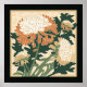 The chrysanthemum is a significant symbol in Japanese art and culture, representing longevity, nobility, and perfection. One of a set of Japanese chrysanthemum art prints, this one in green and orange.