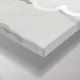 Wrapped canvas patterned with stylised clouds in silky gradients of white to pale silver grey / grey, accented with glimpses of clear blue sky. In Japanese traditions, clouds represent elegance and high status. In Buddhism, clouds signify the ‘Western Paradise’ beyond earth