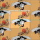 Japanese crane bird and blooming sakura fabric