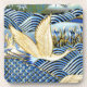 Cranes are symbols of happiness, balance, longevity and eternal youth throughout Asia. This detail of a Japanese tapestry shows flying cranes over water, in tones of ochre (simulating gold) and blues. Customize to your liking!