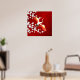Elegant crane and white cherry blossoms on a shimmering red background. Beautiful Japanese design.