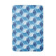 Bath mat in a classic Japanese kimono pattern of stylised cranes, arranged in a pattern of hexagons, in navy / indigo blue, medium blue, and white, on a light sky blue background