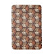 Bath mat in a classic Japanese kimono pattern of stylised cranes, arranged in a pattern of hexagons, in tan, rust / terracotta, and cream, on a dark chocolate brown background