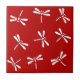 Japanese Dragonfly Pattern, Deep Red and White Tile