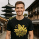 This T-shirt features a design inspired by traditional Japanese "Kamon" symbols. Kamon are family crests that have been used for centuries in Japan to represent families and clans, deeply rooted in Japanese history and culture. Kamon designs often incorporate motifs such as plants, animals, and geometric patterns. This T-shirt reinterprets the elegance of Kamon designs with a modern twist, making it a stylish and eye-catching piece. Perfect for casual wear or as a thoughtful gift for those who appreciate Japanese culture and aesthetics.