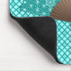 Mouse pad in a classic Japanese fan in the traditional Japanese Asanoha, or star pattern, in turquoise outlined in pale ice blue, on a coordinating patterned background