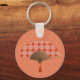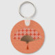 Premium keychain in a classic Japanese fan PH in Japanese Shippo, or "seven treasures" pattern of interlocking circles with a central flower motif, flowers in cream and tangerine orange with a deep mandarin and pastel orange patterned background