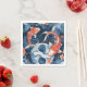 Blue orange watercolor yin yang style illustration from Japanese fish in a pond.