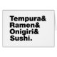 Funny Foodie Asian Food Humour ~ Tempura and Ramen and Onigiri and Sushi.