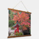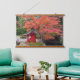 Decorate your living space with this horizontal, hanging wall tapestry with wooden tops that features the photo image of colourful, autumn leaves and a miniature, red Shinto shrine in a Japanese garden. Photo: Point Defiance Park Japanese Garden
