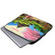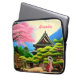 This laptop sleeve has an illustration of a Japanese woman sitting in her garden with a house and mountain in the background. The name on the sleeve is customisable with the name of the recipient.