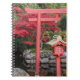 A personal sized, spiral bound notebook that features a photo image of traditional Japanese garden structures, including a red Torii gate along with Red Japanese Maple leaves. You may customise your notebook cover to add text if desired. Use as a journal or to keep important notes. Photo: Point Defiance Park Japanese Garden