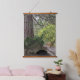 Decorate your living space with this vertical, hanging wall tapestry with wooden tops that features the photo image of a traditional, wooden arch footbridge in a Japanese garden adjacent to a large conifer tree. Photo: Point Defiance Park Japanese Garden