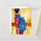 Original modern Japanese style art from a painting by Sacha Grossel of a Japanese Geisha with a royal blue kimono and red obi. This art has been influenced by Asian design and Japanese art.