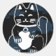 Japanese Good Luck Cat with clouds Classic Round Sticker