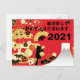 Japanese Happy New Year Chrysanthemum Floral Holiday Postcard