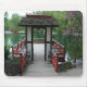 Japanese style at local rotary garden. behind the doorway is a small lake and a bridge that you cross over to a leisurely walk to see the rest of garden area.