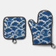 Japanese-Inspired Seamless Ocean Wave Pattern Oven Mitt & Pot Holder Set