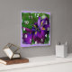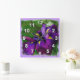 Wall clock with a rough squared image of a deep purple Japanese iris in bloom. Customisable ~ add text by clicking "Customise it!" ~ background colour may also be changed by choosing edit>background and then choosing a colour from the chart. © Little Wing Photography & Design