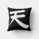 Pillow with Japanese Kanji (Calligraphy) Design. Meaning: Sky, or Heaven. White on Black Design.