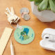 One of the more famous monsters from Japanese culture is a creature known as the Kappa! Kappa are river imps with turtle-like features, and a bowl of water on the top of their heads, which gives them energy when out of water. This product features a cartoon, chibi drawing of a cute little Kappa (河童; "river child"). Its name, in both English and Japanese kanji, appears in the background, along with a decorative blue paint streak.