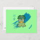 One of the more famous monsters from Japanese culture is a creature known as the Kappa! Kappa are river imps with turtle-like features, and a bowl of water on the top of their heads, which gives them energy when out of water. This product features a cartoon, chibi drawing of a cute little Kappa (河童; "river child"). Its name, in both English and Japanese kanji, appears in the background, along with a decorative blue paint streak.