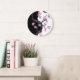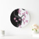Japanese Kimono Black and White Pink Sakura Large Clock