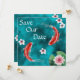 This wedding Save the Date invitation captures the oriental beauty of Japan. It has a beautiful blue water background with two Koi fish swimming surrounded by a lily pad and flowers. Koi fish symbolise love in Japan.