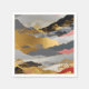 A serene Japanese-inspired landscape featuring layered mountains and trees, accented with shimmering gold details. This elegant composition blends traditional aesthetics with modern abstraction.