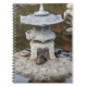 A personal sized, spiral bound notebook that features the photo image of a traditional Japanese garden lantern along with a group of mallard ducks resting on its base. Use as a journal or to keep important notes.