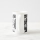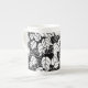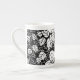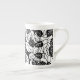 Vintage Japanese kimono print tea cup - an all over pattern of stylised leaves, alternating positive and negative space, in classic black and white
