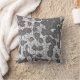 Vintage Japanese kimono print throw pillow - an all over pattern of stylised leaves, alternating positive and negative space, in deep graphite / charcoal grey / grey and light silver grey