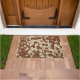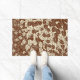 Doormat in a Japanese kimono print - an all over pattern of stylised leaves, alternating positive and negative space, in deep taupe tan and light beige
