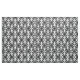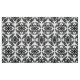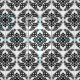 Fabric in a classic Japanese kimono pattern of stylised, four-way, medallions of leaves and flowers in classic black on a deep white background